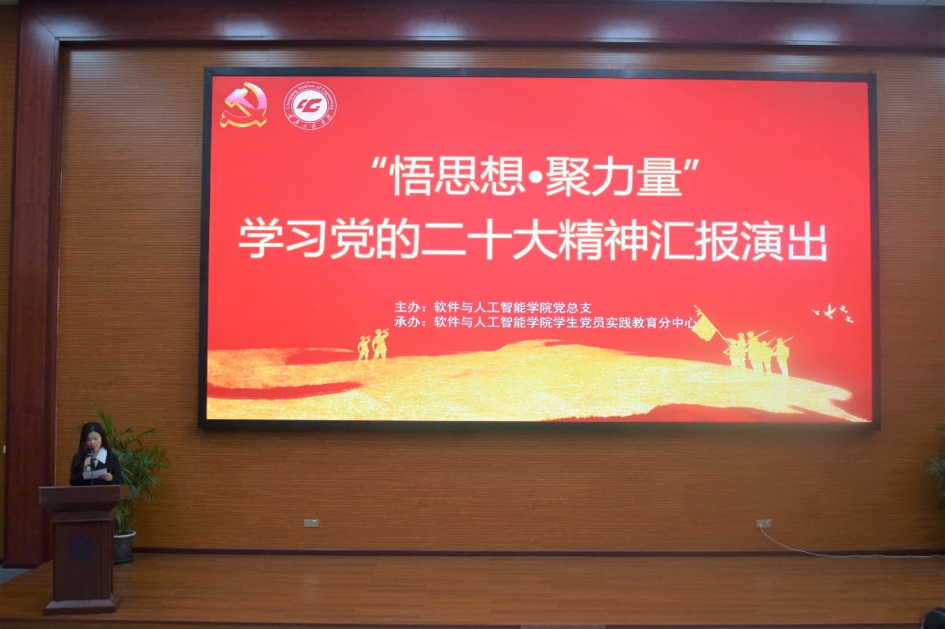 本网讯(文/王瑞浩 图/软件与人工智能学院)为认真学习贯彻党的二十大精神,继承和发扬党的优良传统和作风,11月27日,软件与人工智能学院党总支在信息大楼报告厅举行“悟思想·聚力量”学习党的二十大精神汇报演出。