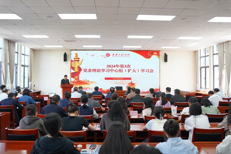 本网讯(文/党委宣传部 图/大学生记者团 陈慧敏)4月26日,学校在南泉校区行政楼201召开党委理论学习中心组(扩大)第3次集中学习会议,进一步深入学习习近平新时代中国特色社会主义思想。全体在家校领导,各职能部门及二级学院党政负责人、专职组织员,马克思主义学院全体教师,党员学生代表参加学习。会议由党委书记陈长虹主持。