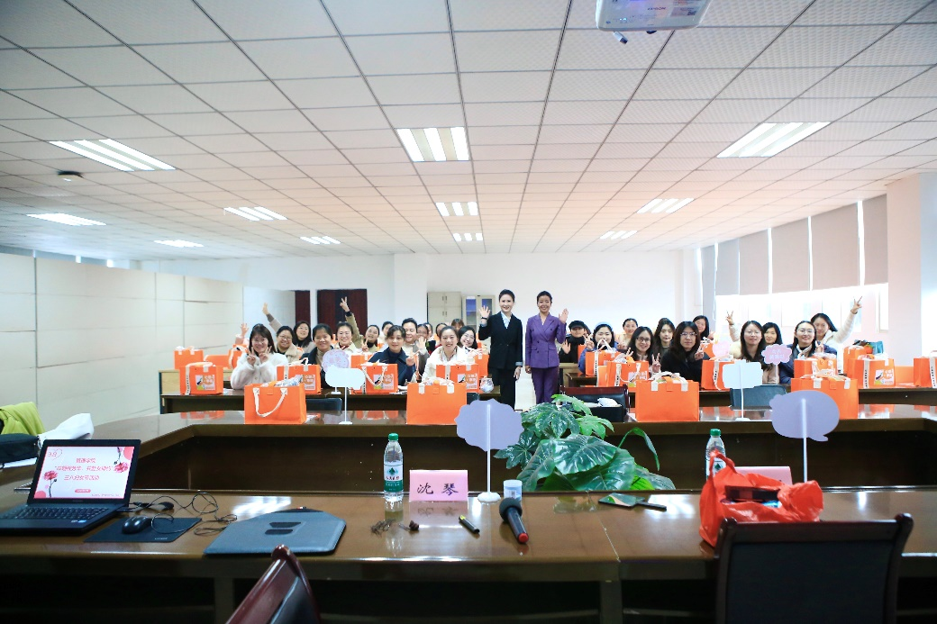 随后,学院工会主席朱露介绍本次活动具体安排。活动特别邀请了中国战略型人才库专业礼仪培训师、政府单位特邀讲解员培训师沈琴和中国国家高级形象设计师、国家人力资源社会保障部礼仪培训师罗金玉女性形象气质提升培训。沈琴老师主要从形象技巧提升、仪态礼仪训练等方面进行了详细讲解,并邀请老师们上台进行现场测评和互动,让大家在实践中掌握变美秘诀。罗金玉老师则为大家讲解提升气质秘诀,演示了发型、配饰与整体风格的搭配技巧,包括丝巾的多种系法。一条条丝巾在老师们的巧手下变幻出不同的造型,为春日增添了一抹亮丽的色彩。