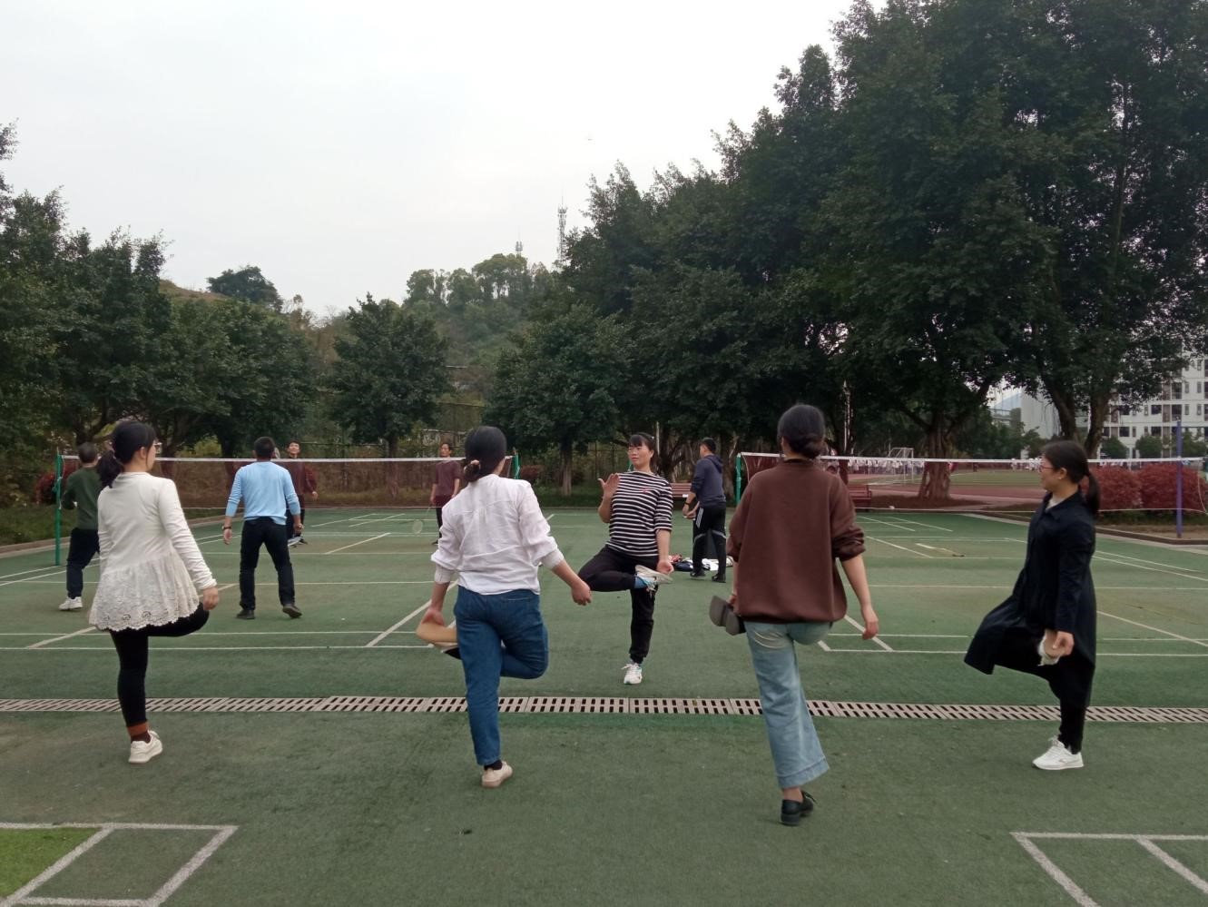 场上,部分老师则率先进入自由对抗环节。他们灵活组队,在球场上挥洒汗水,或进行双打配合,或展开单打较量。自由对抗环节不仅让老师们充分释放了工作压力,也通过实战交流提升了运动技术水平。部分技术娴熟的老师主动分享经验,为不太熟练的老师提供帮助,展现了俱乐部“以球会友”的精神。在活动现场,同学们也积极加入运动中,师生互为对手,各自以稳健防守和精准落点化解攻势,现场喝彩声与笑声交织不断,运动氛围轻松融洽。