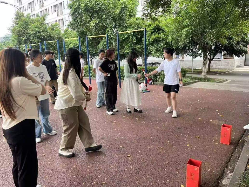 活动开始后,工作人员详细解说了团队协作项目的规则。本次比赛采用积分制,最终积分最多的队伍获胜并获得奖品。在投壶环节,同学们有序排队等候,并互相帮助,展现了良好的团队协作精神。