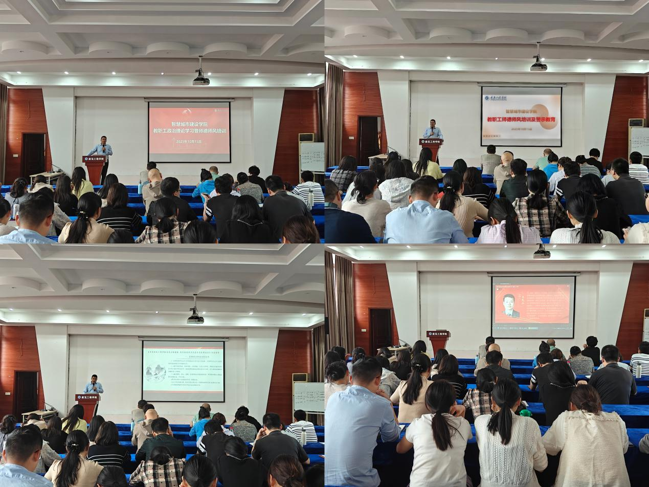 本网讯(文/图 范烨坪)为进一步加强师德师风建设,提升教职工政治理论素养,10月15日,重庆工程学院智慧城市建设学院在学院报告厅组织召开教职工大会进行政治理论学习暨师德师风培训。