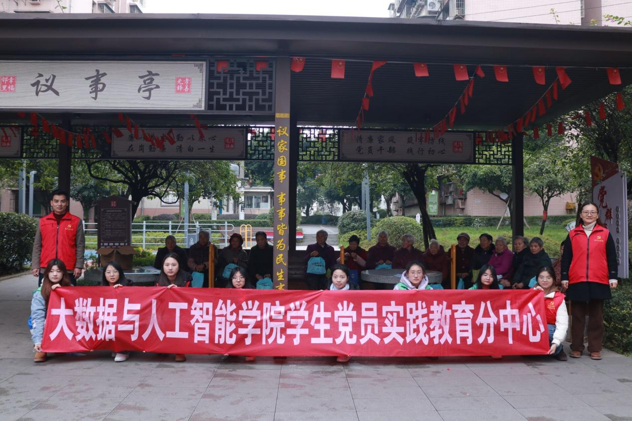 本网讯(文/图 黄玉洁/邓思懿)为充分发挥学生党员先锋模范作用,同时精准对接老年群体安全健康需求,11月23日,大数据与人工智能学院学生党员实践教育分中心走进重庆市巴南区花溪街道先锋村民委员会,成功举办“消防结核齐防控,安全安康伴夕阳”党建引领活动。活动以通俗宣讲、温情互动为核心,为当地老人送上实用的安全健康知识,搭建起老少共融的暖心桥梁。
