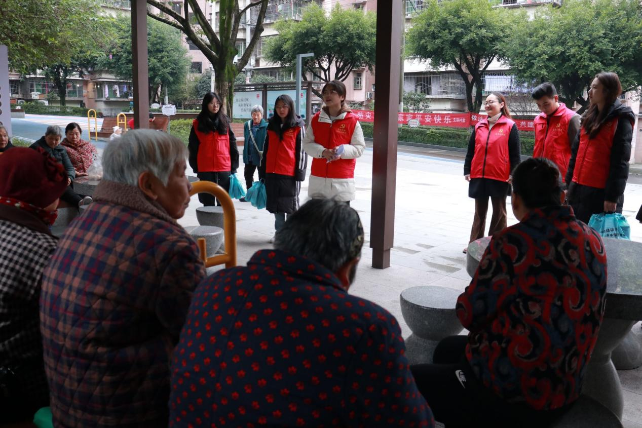 当日上午,20余名学生党员志愿者提前抵达活动场地,完成设备调试、物资摆放等筹备工作,以饱满的热情迎接老人们的到来。活动开场环节,主持人摒弃生硬的宣讲模式,采用“拉家常”的亲切方式,向老人们细致介绍活动背景与流程,用接地气的话语快速消除距离感,让现场氛围迅速升温。宣讲环节聚焦老人日常生活高频需求,内容实用、形式鲜活。宣讲人冉菊连以消防安全为主题,结合老年群体居家生活特点,用通俗直白的语言搭配真实生活案例,系统讲解了电器使用安全、厨房用火隐患排查、火灾初期应急处置及简易逃生技巧等关键知识,让老人们听得懂、记得住、用得上。安全健康问答”互动环节成为活动的一大亮点。老人们结合自身生活疑问踊跃举手,针对“电器老化如何自查”等问题积极提问。学生党员志愿者们耐心倾听、逐一回应,用通俗的解释和具体的建议为老人们答疑解惑,现场交流氛围热烈而融洽。互动结束后,志愿者们分组与老人一对一亲切交流,主动倾听老人的生活诉求与健康担忧,用真诚的关怀和专业的指导给予慰藉,让老人们感受到实实在在的温暖。