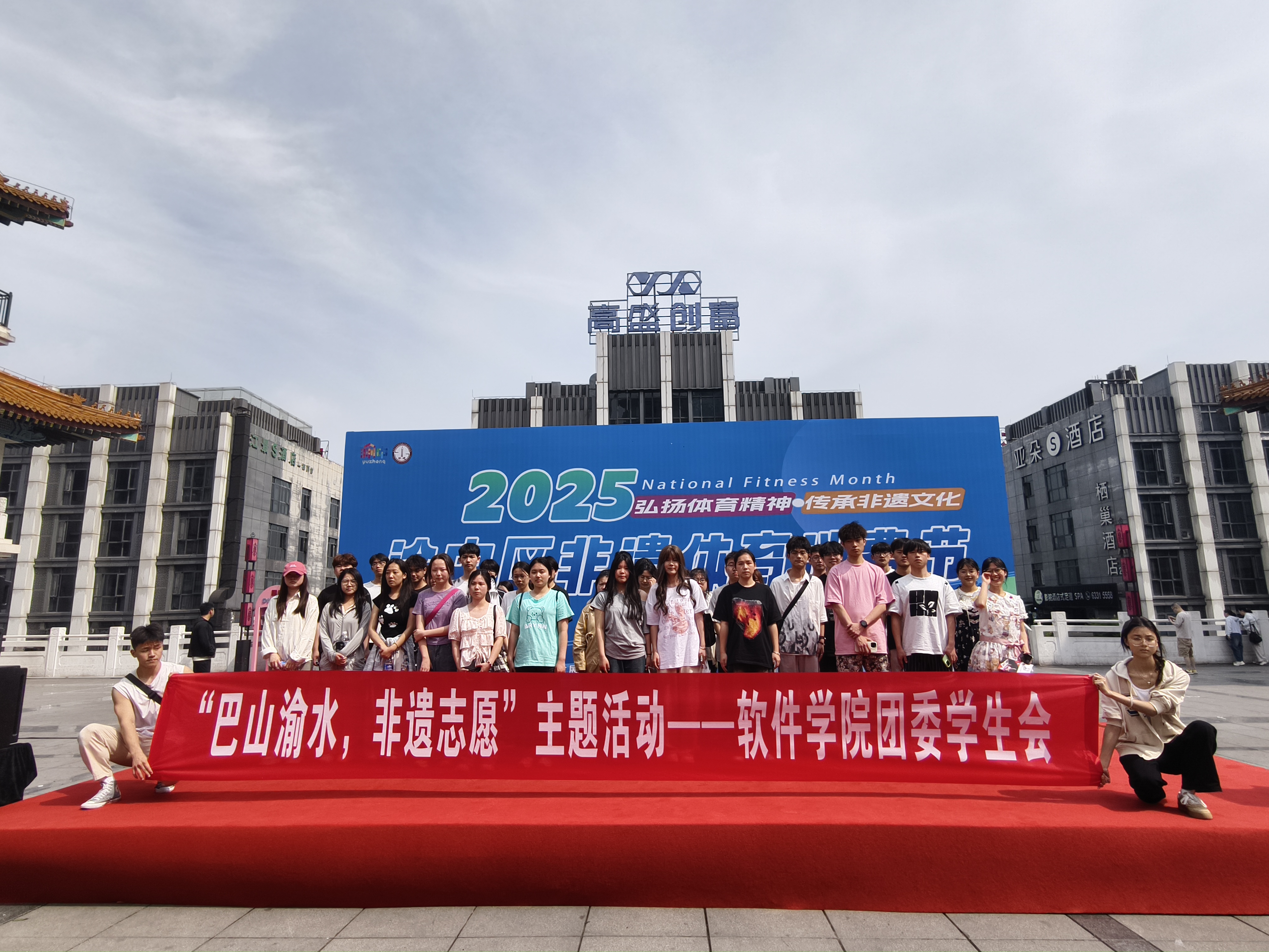 2025年4月19日,由重庆市渝中区文化和旅游发展委员会主办,软件学院学生会对外联络部联合多家单位承办的“巴山渝水,非遗志愿”主题活动在魁星楼大唐广场顺利举行。50名软件学院学子通过非遗体验、体育竞技、文化互动,深度感受巴渝传统体育文化的独特魅力。