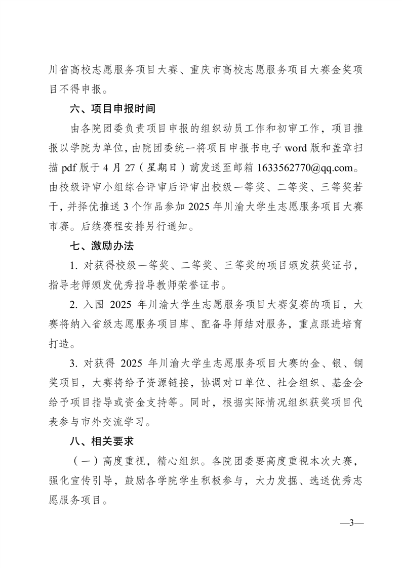 共青团重庆工程学院委员会关于举办2025年大学生志愿服务项目大赛的通知