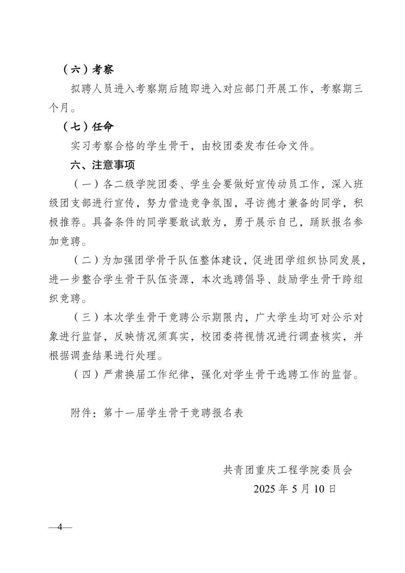 共青团重庆工程学院委员会关于公开选聘第十一届学生骨干的通知