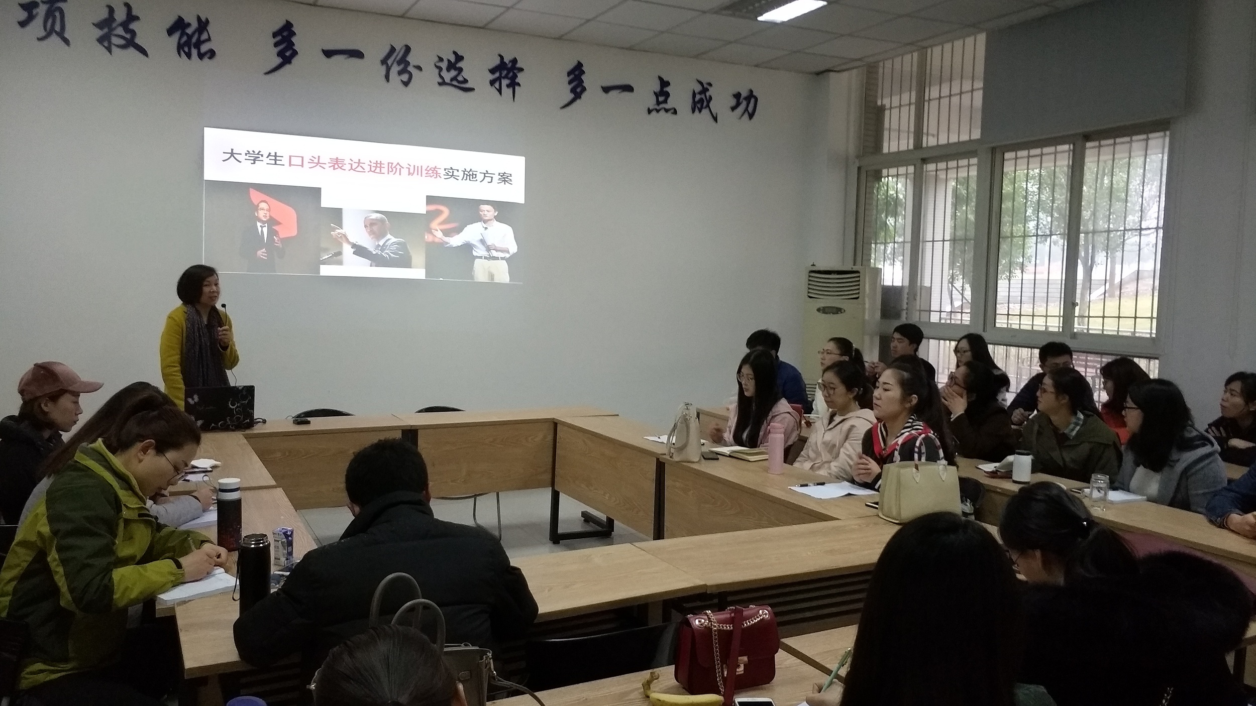 此次培训由校语委办副主任邹春霞教授主讲,南泉校区二级学院学工办主任、全体辅导员参加。
