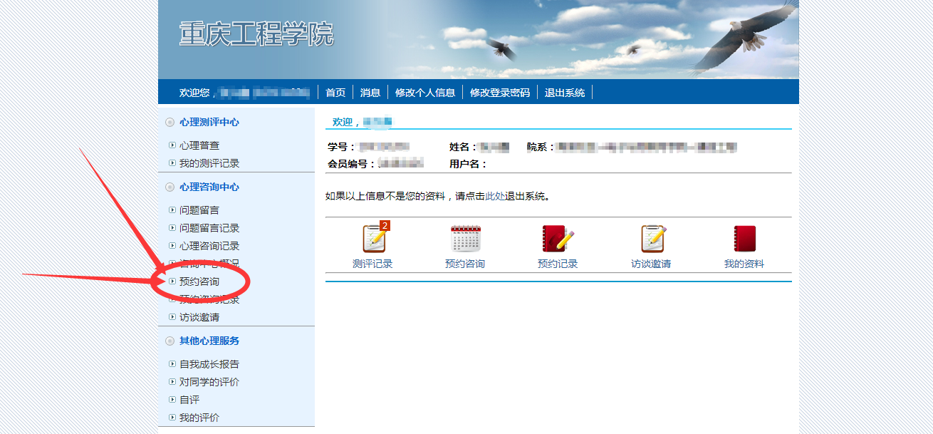 5.进入系统,选择预约咨询。