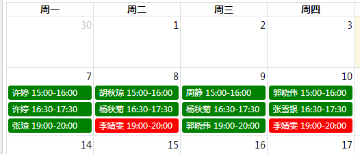 注:绿色表示可预约,红色表示该时间段已经被预约。