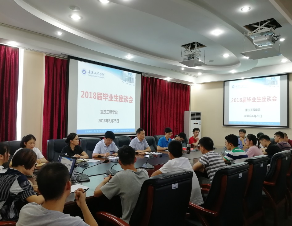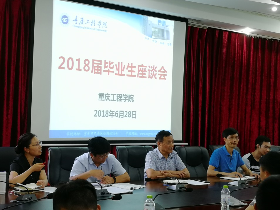 本网讯(重庆工程学院学工部)经过精心筹备,我校于2018年6月28日下午1:30在第二会议室成功组织召开重庆工程学院2018届毕业生座谈会,校长唐一科、副校长程昌华、副校长王琼花、校党委副书记盛友兴出席本次会议与大家亲切座谈,24名毕业生代表参加了此次座谈会。
