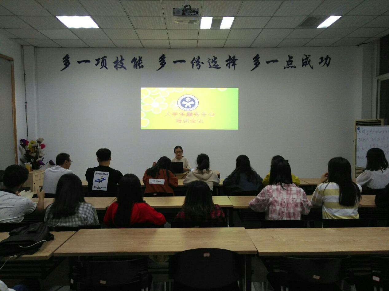 本网讯(大学生服务中心)2018年9月16日星期天晚20:30,大学生服务中心组织召开本学期第二次工作会暨新成员见面会,由大学生服务中心主任周梨主持本次会议。