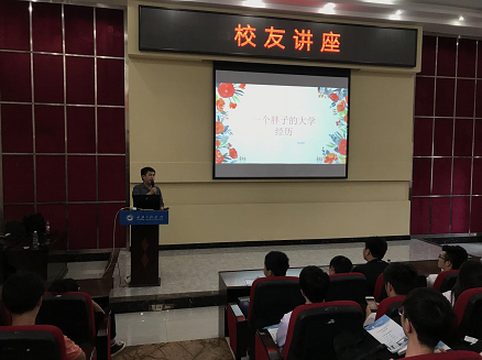 喻成林,重庆工商大学2019届学生,大学期间成绩优秀,曾获得优秀学生一等奖学金、学习优秀奖学金、科技创新奖学金等;曾在国家级、省级期刊公开发表文章5篇;在校期间积极参加各类比赛,并多次获奖;此外,还积极投身社会实践,组织策划多种活动,累计受到中国新闻网、腾讯网、新浪网等7家媒体的多次报道;长期坚持在公益一线道路上,被市委禁毒办评为“2018重庆市全民禁毒宣传形象大使”。讲座过程中,喻成林首先对在座的同学嘱咐了学习与成长这两方面的重要性。接着,他从工作、学习等方面分享自己的大学的经历。在讲座的最后送给大家一句话“不论怎样选择,都要让自己在毕业的时候不会后悔”。