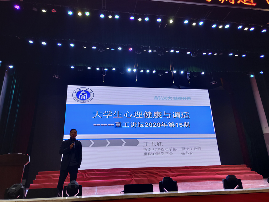 本网讯(图/文 大学生素质教育中心)2020年11月23日下午,大学生素质教育中心再次邀请了西南大学心理学部副教授,应用心理学方向硕士生导师,社区心理健康研究室主任王卫红教授在学术报告厅开展了题为“大学生心理健康与调适(二)”的专题讲座 。