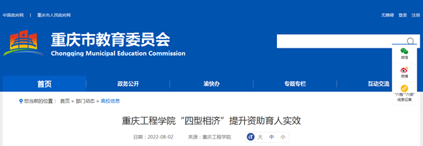 重庆工程学院深入学习贯彻习近平总书记关于教育的重要论述,坚持以人民为中心,紧紧围绕立德树人根本任务,着力在“输血”与“造血”、“保障”与“发展”中创新作为,全面服务学生成长成才,资助育人工作取得较好成效。