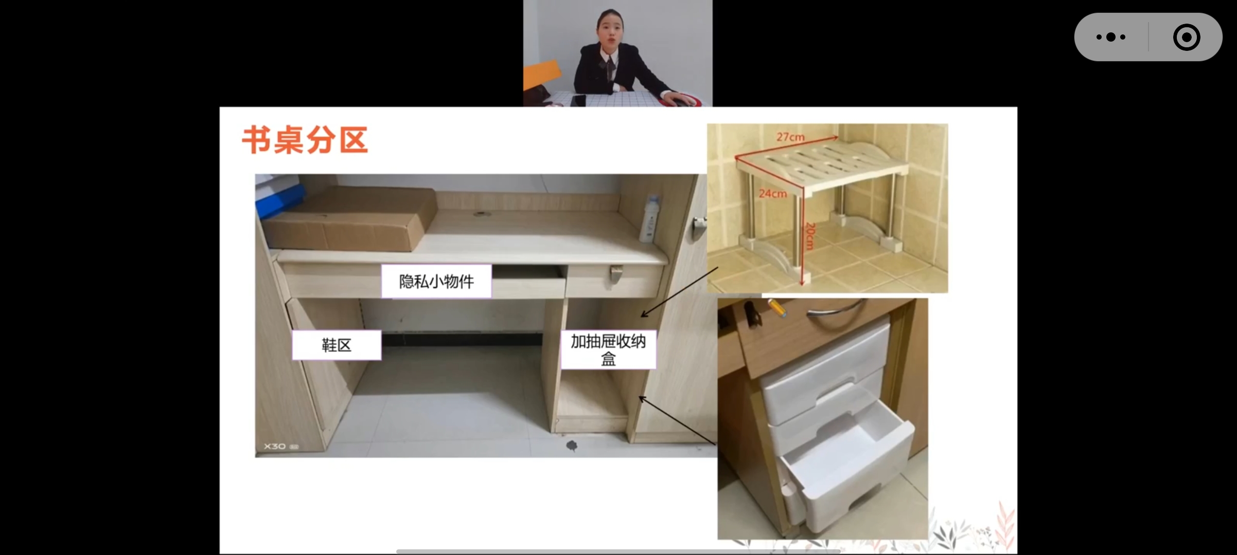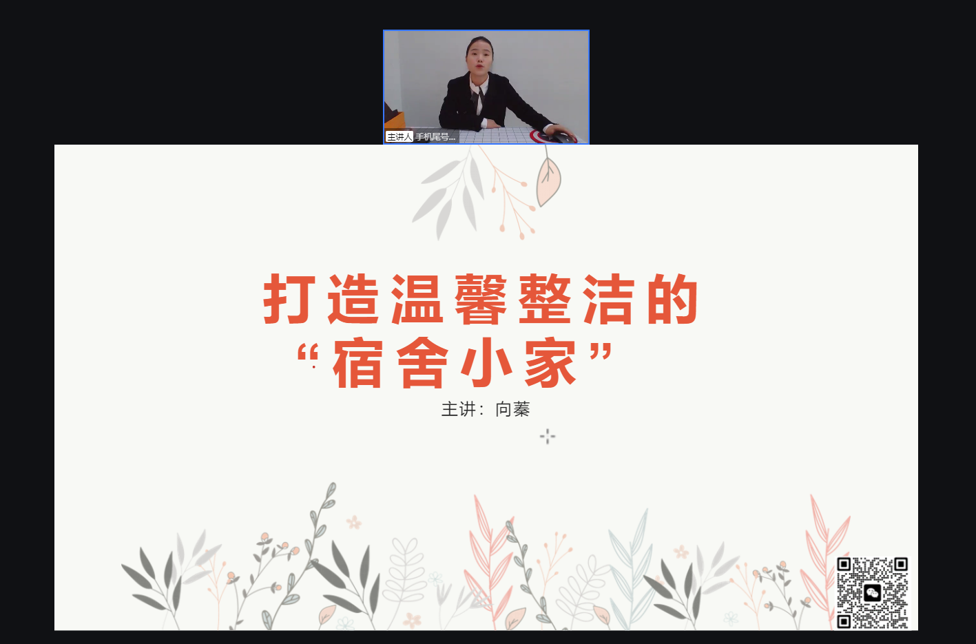 2022年12月2日下午,我校学生社区有幸邀请到高级收纳整理师向蓁,在小鹅通直播平台为同学们带来,以“打造温馨整洁‘宿舍小家’”为题的直播讲座,讲座历时70分钟,浏览量达12000余人次。