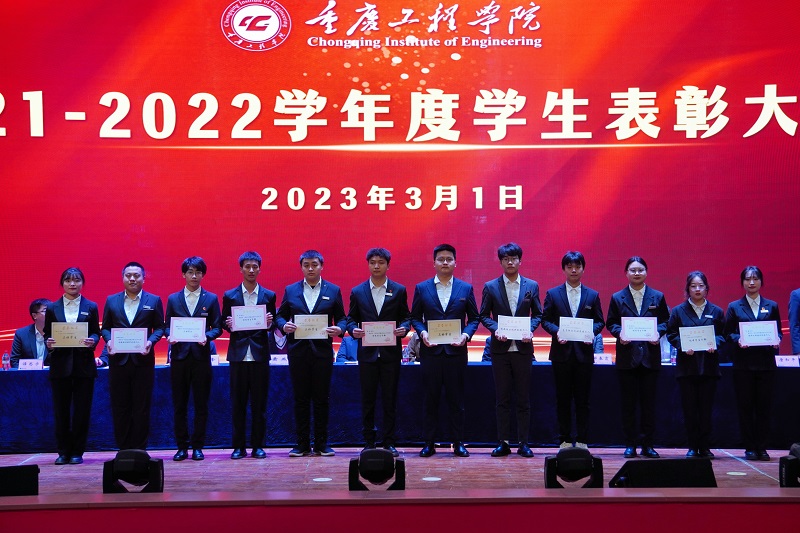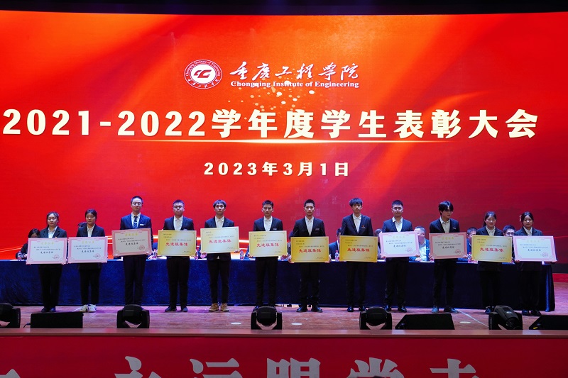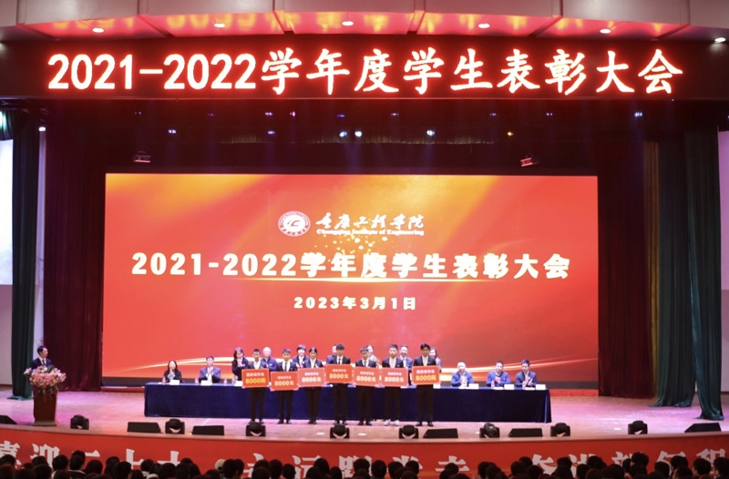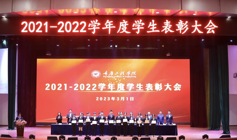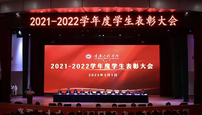 本网讯(文/学生处 李鹏 图/大学生记者团 肖郁遥、盘丽珍、夏康惠)3月1日,重庆工程学院2021-2022学年度学生表彰大会在学术报告厅举行,党委书记、督导专员谭明术,相关职能部门负责人,各二级学院党组织负责人以及全校辅导员、学生代表等1100余人参会,学生处李鹏主持会议。