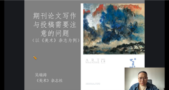 本网讯(图/文 大学生素质教育中心)为进一步加强校园文化建设和大学生素质教育,激发学生对于心理学的了解与大学生心理调节的思考,3月29日中午,大学生素质教育中心邀请到了中央美术学院美术学博士吴端涛教授通过小鹅通直播平台为全校各专业学生开展题为“期刊论文写作与投稿一一以《美术》杂志为例”的专题讲座。吴教授现任中国美协《美术》杂志编辑部主任,中国美协美术理论委员会学术秘书,中国美术家协会会员中国文艺评论家协会会员,山东师范大学客座教授,山东艺术学院特聘研究员。研究方向主要为近现代美术史、美术思潮,全真教艺术史。论文多篇发表在《美术研究》《美术》及《人民日报》等核心报刊。个人获第63批中国博士后科学基金1等面上资助。论文获中国美协主办的“新代中国美术理论建设——第二届青年美术论坛”入会资格奖(最高奖)、“全国美术高峰论坛·上海”入会资格作品奖(最高奖)。专著《蒙元时期山西地区全真教艺术研究》由文物出版社出版;专著《西行美术家研究·董希文》(2023年底出版)入选“十四五”时期国家重点出版物出版专项规划(社会科学与人文科学出版规划艺术项目)。