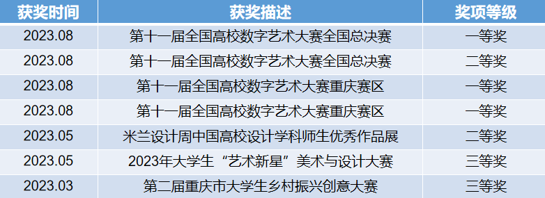 累计获得国家级奖励3项、省市级奖励7项、校院级荣誉20余项。