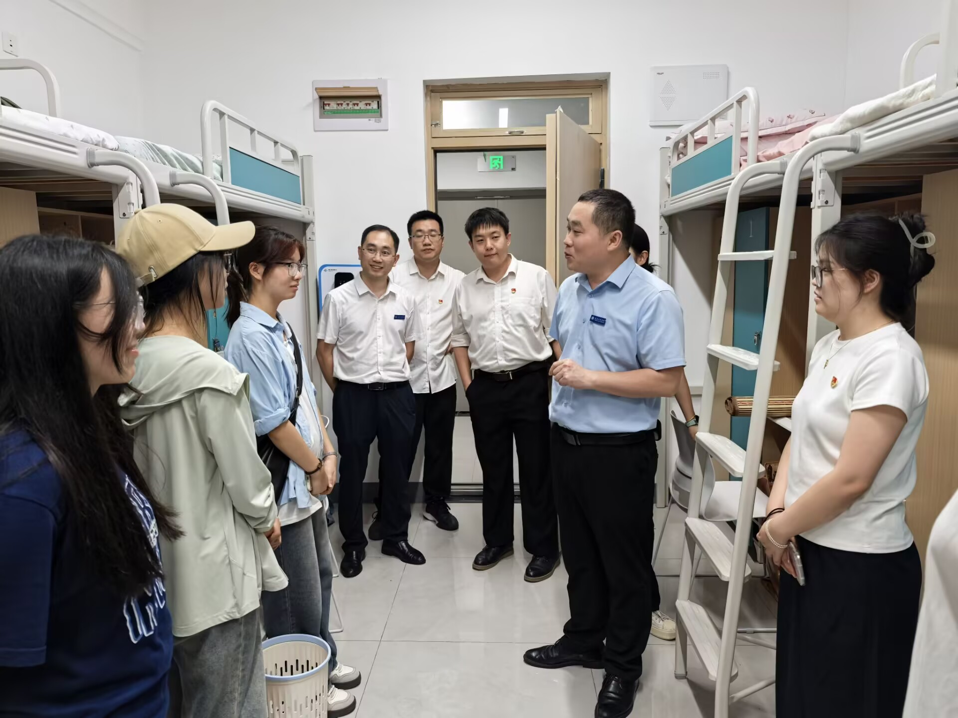 为深入贯彻立德树人根本任务,落实学校关于新生入学教育的工作要求,及时了解新生思想动态与生活需求,帮助他们尽快适应大学生活,2025年9月13日19时,学院院长严伟、院长助理吴诗奎带领全体新生辅导员,深入新生宿舍开展走访慰问活动。