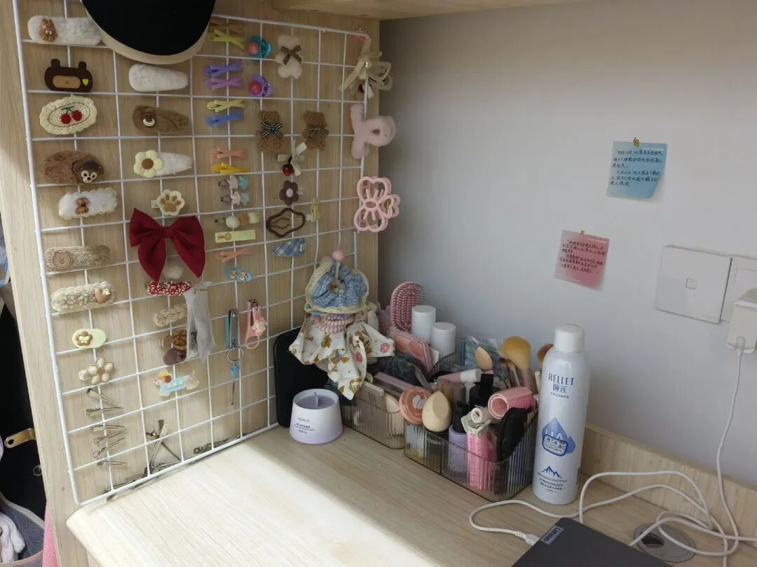 宿舍整体布局简洁通透,上床下桌的设计让空间利用恰到好处;储物区的衣物、杂物分类收纳,生活用品摆放有序;学习区的书籍错落有致,文具用品取用便捷。这份规整,既是我们对生活的珍视,也是高效学习的基石。