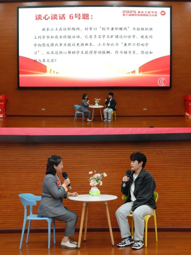本次决赛分为基础知识测试、谈心谈话和案例研讨三个环节。来自全校各学院的辅导员们积极参与,展现出了扎实的专业素养和良好的精神风貌。