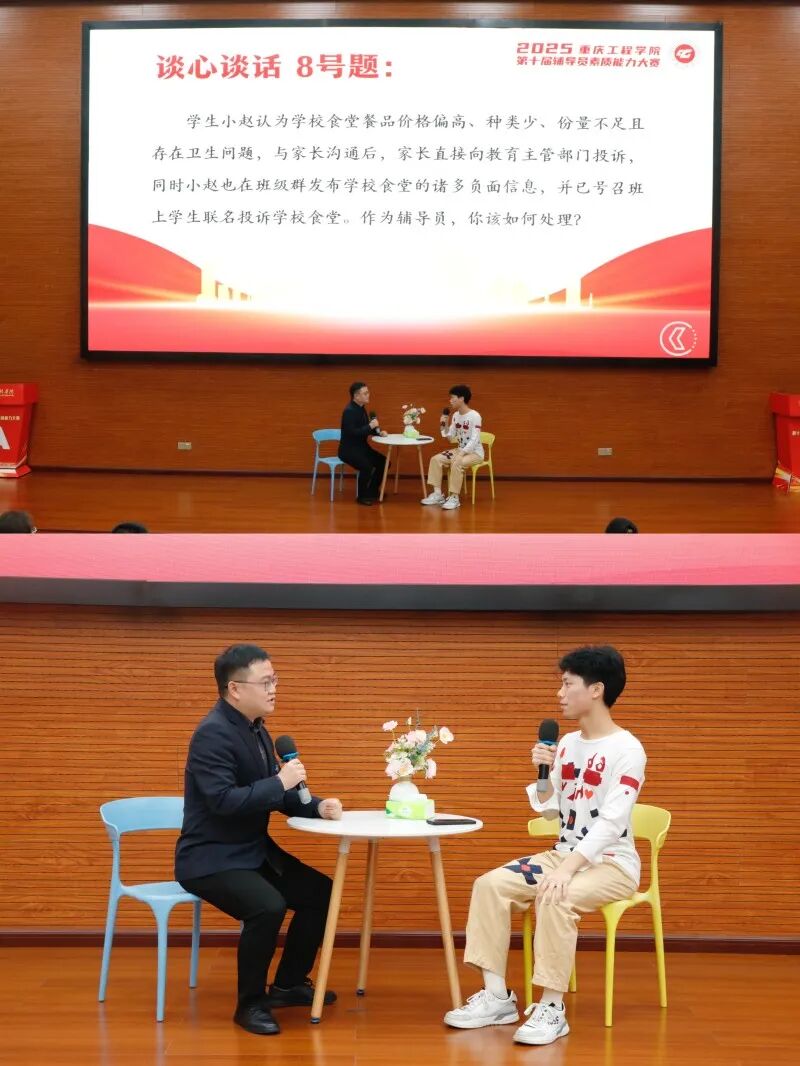 为进一步提升辅导员队伍的专业素养和育人能力,1029日,学校在7807报告厅举办了重庆工程学院第十届辅导员素质能力大赛决赛。学校特邀重庆建筑工程职业学院党委学工部部长卢嘉、重庆邮电大学网络空间安全与信息法学院党委副书记张丹担任本次大赛评委,学校副校长王建东出席,学生处等职能部门主要负责人、各二级学院党总支书记、学生科科长和全体辅导员应邀在场观摩。