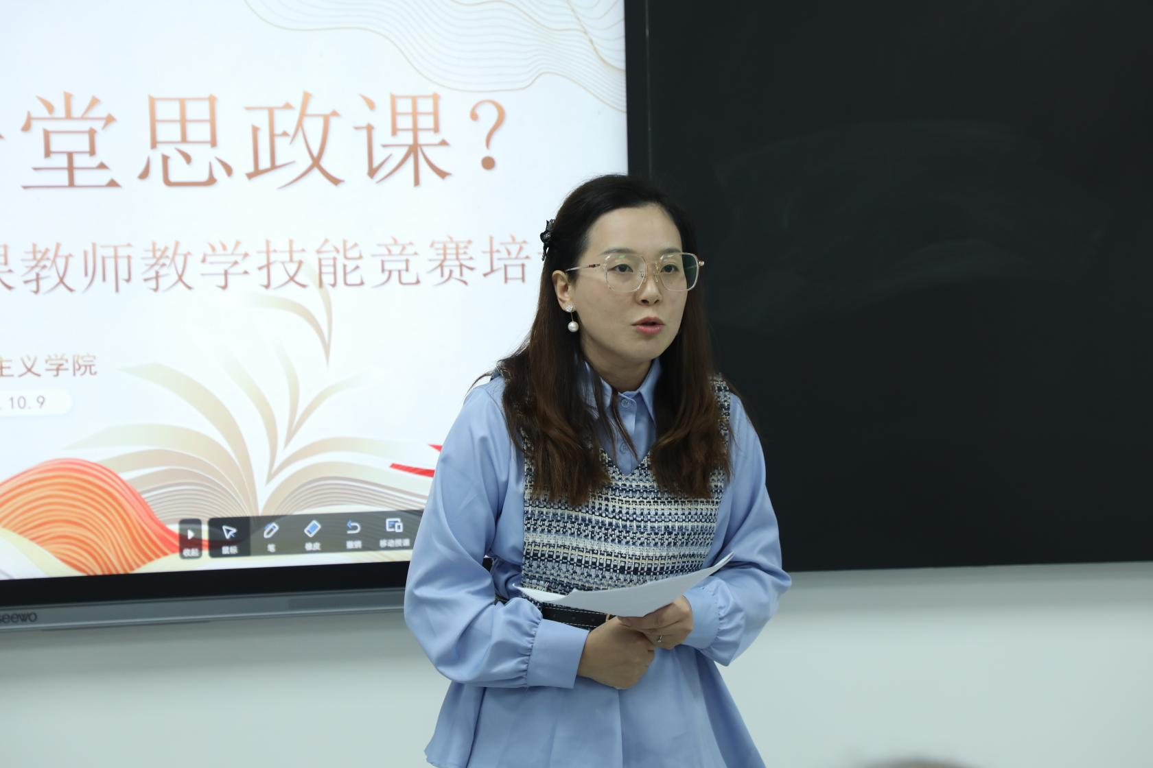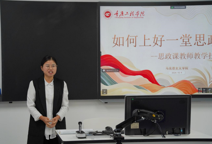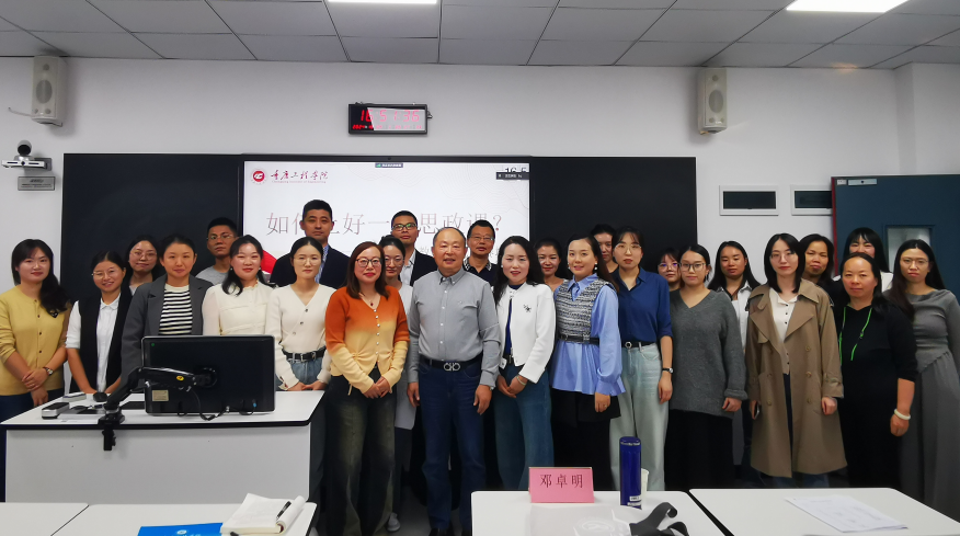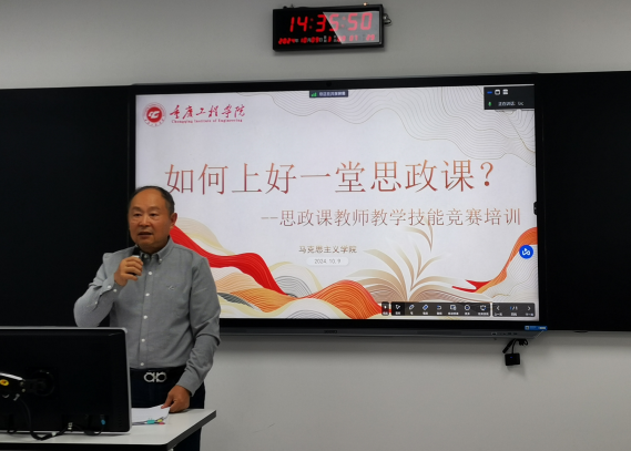 (本网讯 文/图 罗舒)为提升高校思政课教师教学水平,积极备战重庆市 2024 年高校思政课教师教学技能竞赛,马克思主义学院于10月9日在7106组织开展了以“如何上好一堂思政课?”为主题的思政课教师教学技能竞赛培训。本次培训邀请现任教育部高等学校马克思主义理论类专业教学指导委员会委员、重庆市高校思想政治理论课教学指导委员会副主任邓卓明教授主讲,学院副院长王巧玲出席,全体专任教师参加。