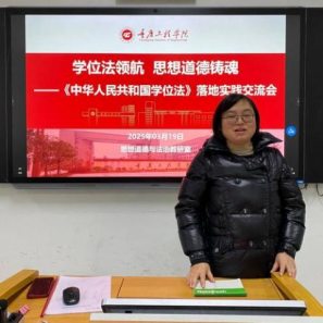 3月19日,思想道德与法治教研室于双桥校区第一教学楼104 教室召开“学位法领航 思想道德铸魂”专题实践交流会,深入贯彻《中华人民共和国学位法》精神,推动法律与思政教育融合。会议由教研室副主任李婧主持,全体教师参会。