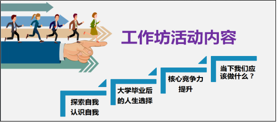 “我的未来我做主”大学生生涯规划工作坊,在寒冷的冬日,陪伴我们探索自我,发现自己的优势与资源,确定人生目标,寻找你想要的鲜花掌声,设计当下要走的人生每一步。
