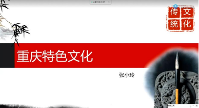 本网讯(图/文 大学生素质教育中心)为进一步宣传贯彻习近平总书记视察重庆重要讲话精神,进一步使我校师生熟悉了解重庆历史和重庆文化,讲好重庆故事,增强文化自信,5月6日下午,大学生素质教育中心邀请到了张小玲教授通过腾讯课堂平台为全校各专业学生开展题为“重庆特色文化”的专题讲座。张小玲,副教授,教学名师,为重庆市首批院士科普专家团队成员,重庆市女科技工作者协会会员,曾多次参与社会服务、科学普及活动并开展相关讲座。