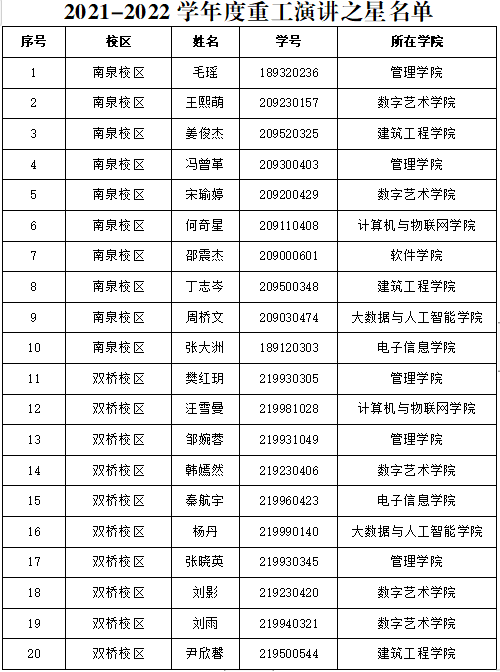 当前位置:首页 > 魅力晨课 > 学子风采 > 2021-2022学年度重工演讲之星风采展示