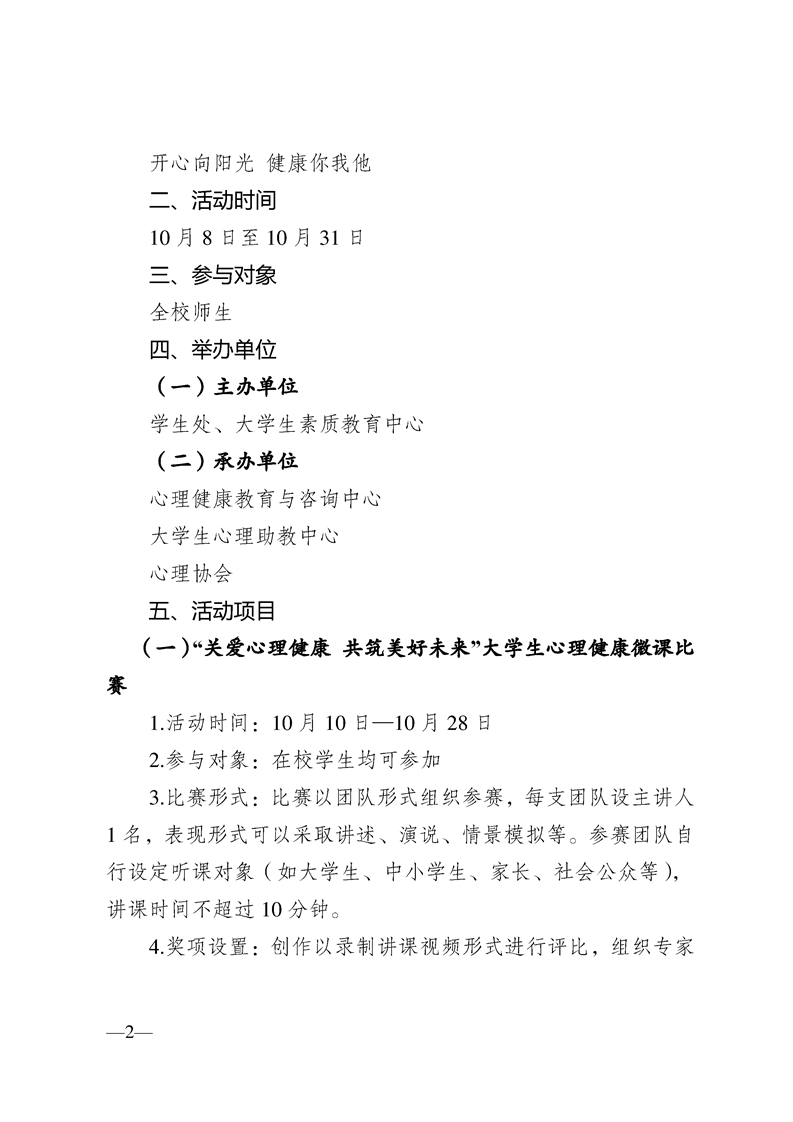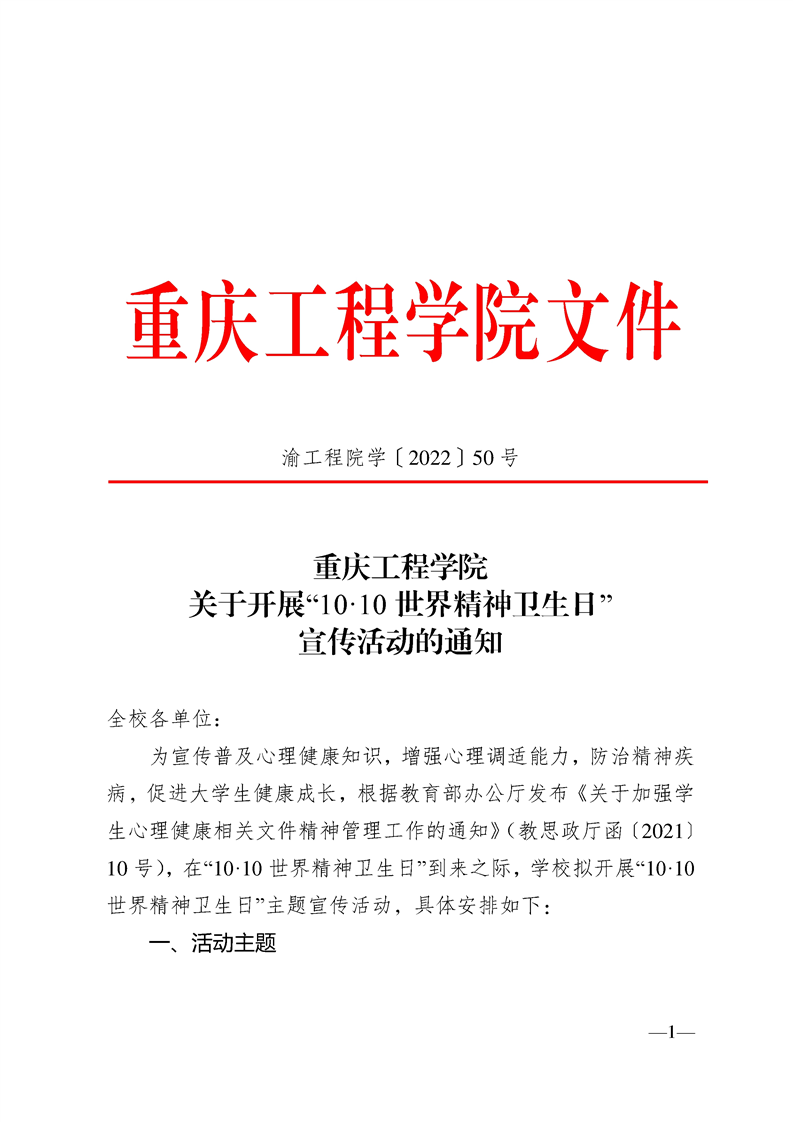 当前位置:首页 > 首页内容 > 通知公告 > 关于开展“10·10世界精神卫生日”宣传活动的通知