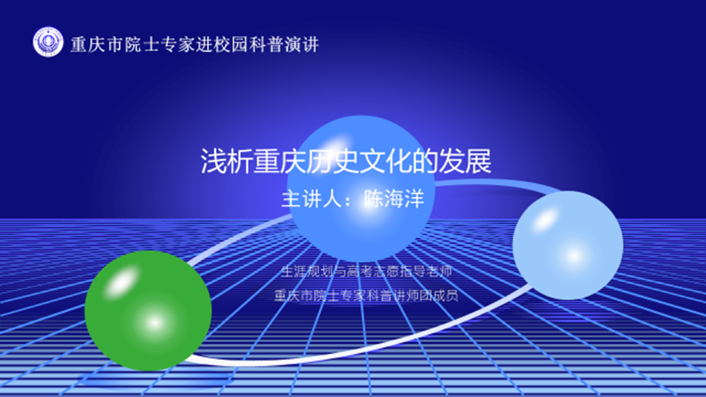 本网讯(图/文 大学生素质教育中心)为进一步加强校园文化建设和大学生素质教育,激发学生对于重庆历史文化发展的兴趣,10月26日下午,大学生素质教育中心邀请到了重庆理工大学的陈海洋教授通过小鹅通直播平台为全校各专业学生开展题为“浅析重庆历史文化的发展”的专题讲座。陈教授是重庆理工大学退休副教授、五级职员,也是现重庆市专家院士进校讲师团成员,全球职业生涯规划师、全球职业生涯技术教练。陈教授曾历任区教委中职教科长,中学书记校长,重庆理工大学商贸信息学院副书记、副院长,重庆理工大学招生就业处副处长,重庆高校招生专委会秘书长,重庆考试院招考公司特聘专家等职。