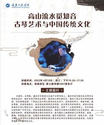 4月19日下午,大学生素质教育中心也有幸邀请到重庆市非物质文化遗产古琴传承人、重庆市音乐家协会古琴专业委员会会长兰滇军先生为在校师生带来了一场视听及文化盛宴,将高雅的古琴艺术引入校园,在揭开古琴神秘面纱的同时,也让师生在千年清音的熏陶中感悟中国传统文化的韵与味。