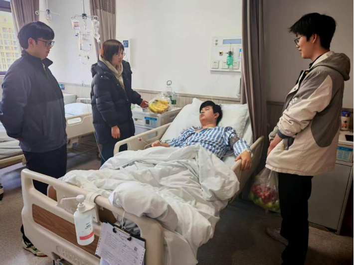 (文/图 软件学院 罗瑞)2月28日,软件学院学生许彬鑫因肾脏手术在巴南区人民医院住院治疗。因父母无法到院照料,其室友主动担起陪护责任,每日轮流送餐、照料起居。辅导员任灿老师也携水果与祝福前往病房探望,关切询问病情,鼓励他“安心养病,考研复习我们陪你一起扛”。