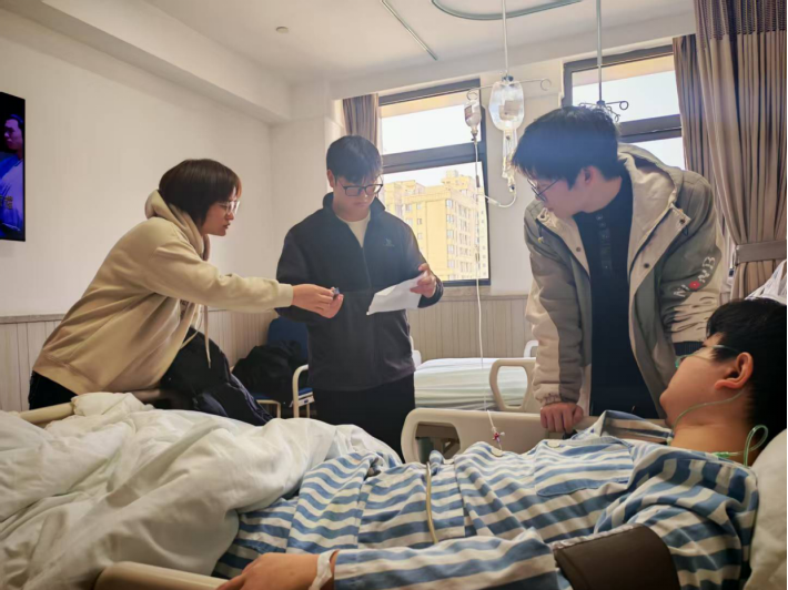 “困难击不垮有光的集体”。病床上的许彬鑫目光坚定:“室友把‘寝室书房’搬到了病房,我有什么理由不快点好起来?”从竞赛奖台到病房陪护,软件学院学子用行动诠释了同窗情谊的厚度。这份病房里的温暖答卷,写满了青春最真挚的注解:所谓成长,不仅是追逐星辰,更是成为彼此暗夜里的光。