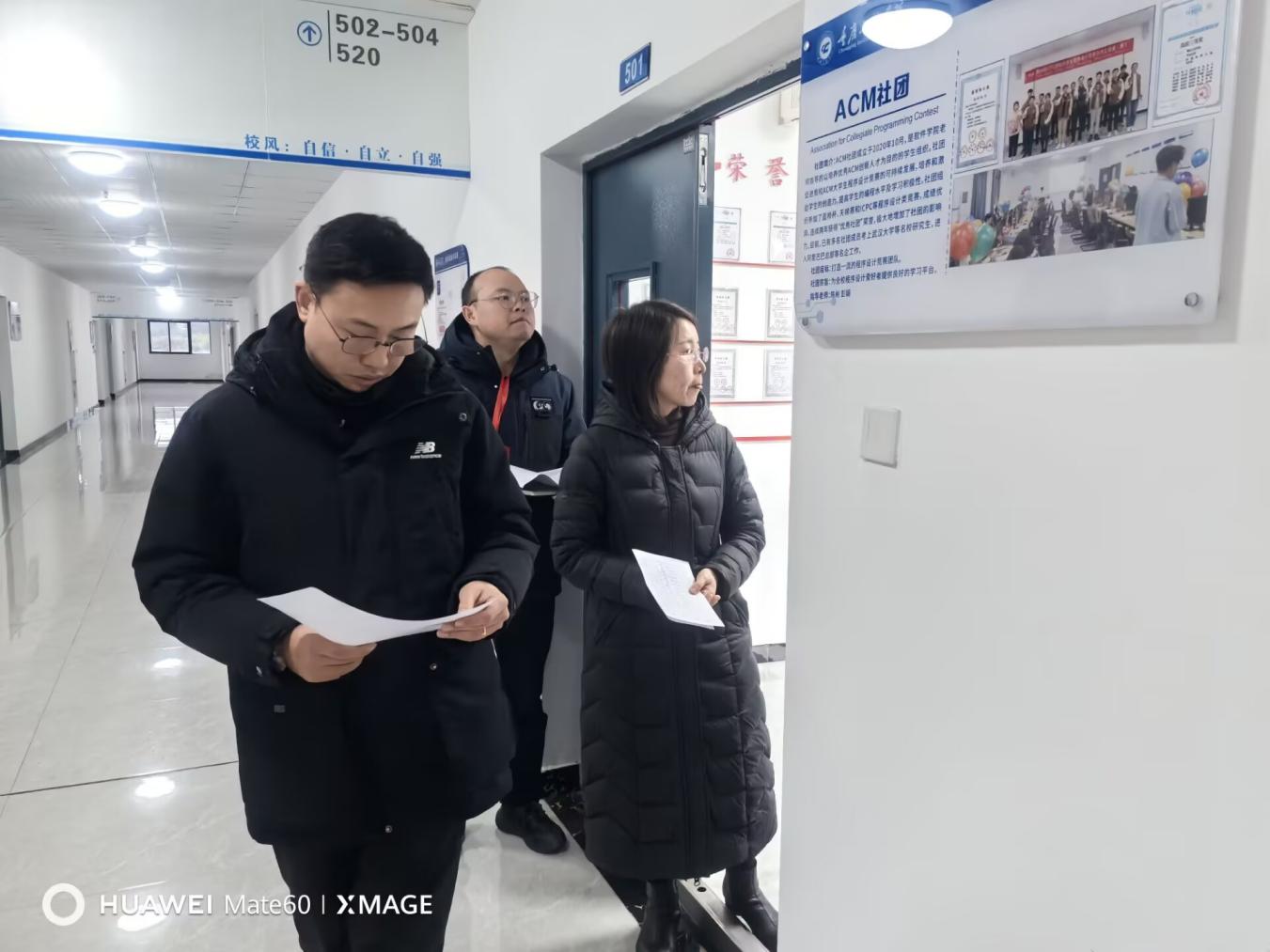 (文/图 软件学院 梁书娟) 2025年2月24日上午,软件学院院长周龙福、党总支书记刘子菱、副院长唐浩坤、院长助理刘阳以及学校督导米翔畅,在教务科科长张红实、梁书娟老师陪同下深入教学一线,对我院新学期第一堂课授课情况进行巡查,巡查楼栋包括7教、6教、4教、3教等18个教室。
