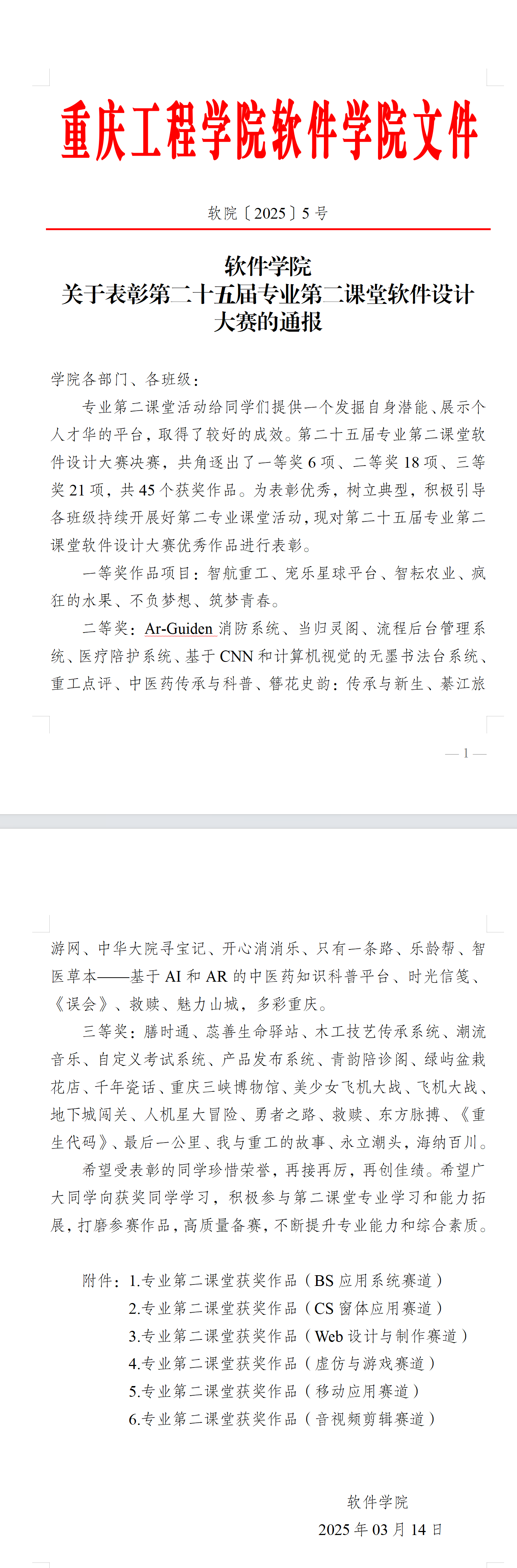 软件学院关于表彰第二十五届专业第二课堂软件设计大赛的通报