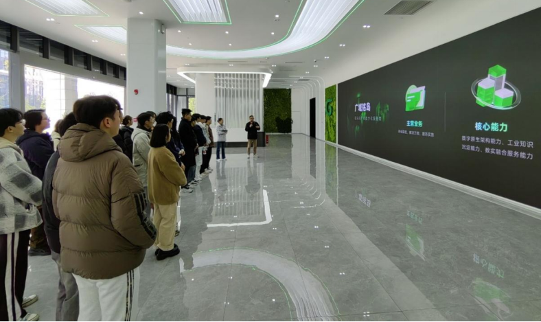 在广域铭岛,学生们参观了公司的研发中心、生产车间以及智能仓储系统。公司技术负责人详细介绍了企业在智能制造、物联网和大数据等领域的最新成果,并展示了如何将这些技术应用于实际生产中。学生们还参与了互动环节,与技术专家进行了深入交流,探讨了行业前沿技术的发展趋势和未来挑战。