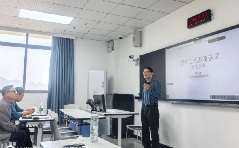 随后,张力生教授分享了专业工程认证的经验。他从以学生为中心,产出导向、持续改进等方面展开,强调采用OBE理念,围绕毕业要求设计教学目标,通过“做中学”,基于项目学习形式,培养学生解决复杂问题的能力。