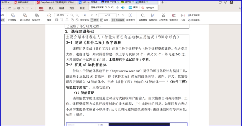本次讨论会课程组成员通过思想碰撞与经验共享,不仅明晰了“AI+软件工程”课程改革的实施路径,更凝聚起以技术赋能教学创新的共识。未来将通过动态更新AI技术应用案例库、建立跨校教研共同体等方式,持续优化“AI+软件工程”人才培养体系,为产业智能化转型输送兼具工程素养与AI创新能力的复合型人才。