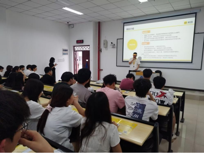 在宣讲会上,美团招聘负责人首先介绍了公司的发展历程、行业地位及未来战略规划。通过详实的数据和生动的案例,向同学们展示了美团在生活服务领域的创新实践和技术实力。在互动环节,企业代表提出“你眼中的美团是一家怎样的公司”等开放性问题,同学们积极回应,现场气氛较为热烈。