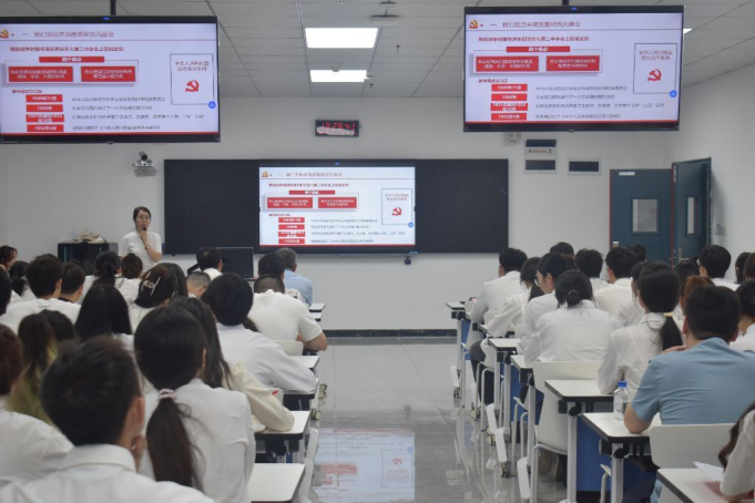 刘子菱书记我们党历来高度重视党风建设谈起,从党成立初期首个惩治贪污文件到新时代三不腐机制,强调深入贯彻中央八项规定精神战略意义。她结合系列负面典型案例,剖析了放松学习、思想淬炼缺失、滥用职权等违反中央八项规定精神的突出问题,并就基层党员及干部如何贯彻落实中央八项规定精神提出知敬畏、明底线、强担当、重实干、正心态的五点意见,要求全体师生党员要慎思、慎微、慎言、慎始筑牢防线、守好底线、不越红线。