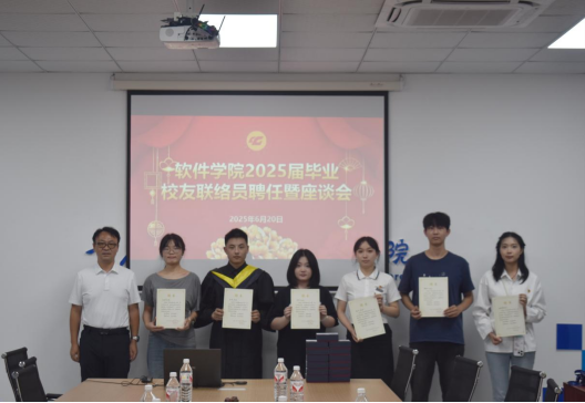 (图/文 软件学院 滕攀)2025年6月20日下午,软件学院在7506会议室开展2025届毕业校友联络员聘任暨座谈会。学院领导班子、教师代表、2025届校友联络员齐聚一堂,共叙师生情谊,共谋学院发展,为毕业生迈向新征程注入温暖力量。