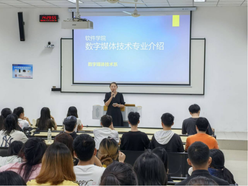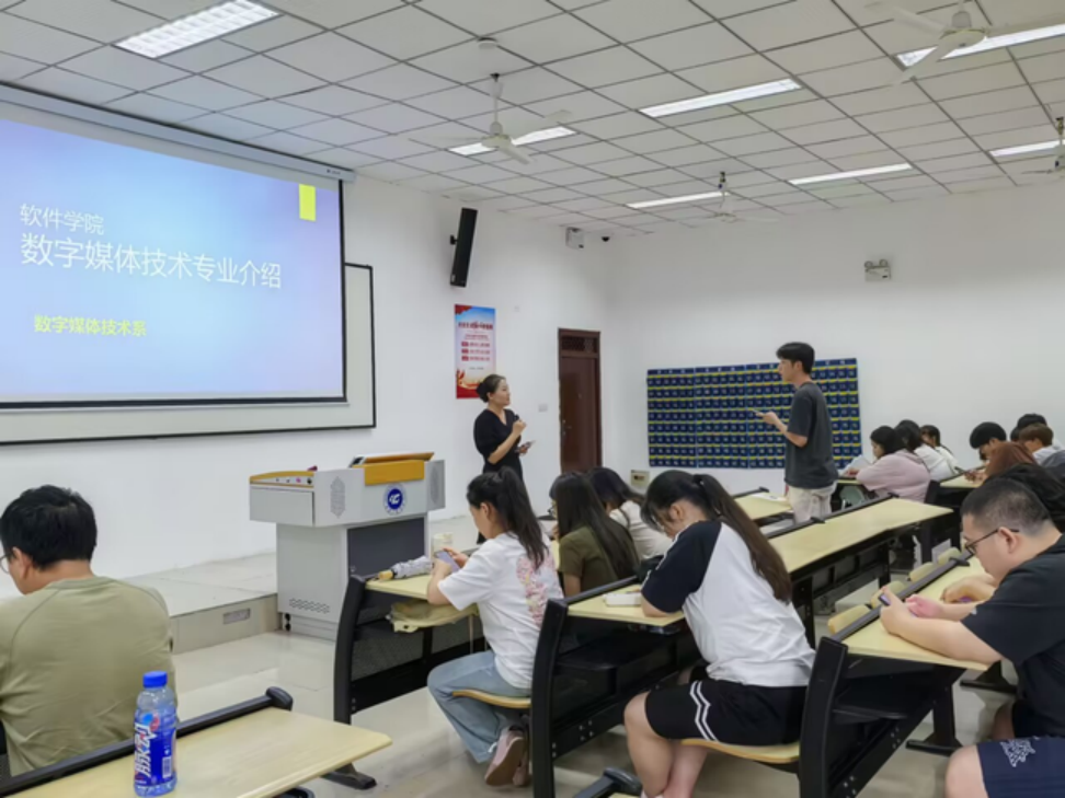 9月17日下午,软件学院在第一教学楼107教室举行专业教育,2025级数字媒体技术全体专升本新生参会。本次宣讲旨在帮助专升本新生快速了解专业培养体系、明确学习方向,活动由韩祺琦老师主持,数字媒体技术系主任石磊老师、学院副院长张晓颖出席并讲话。