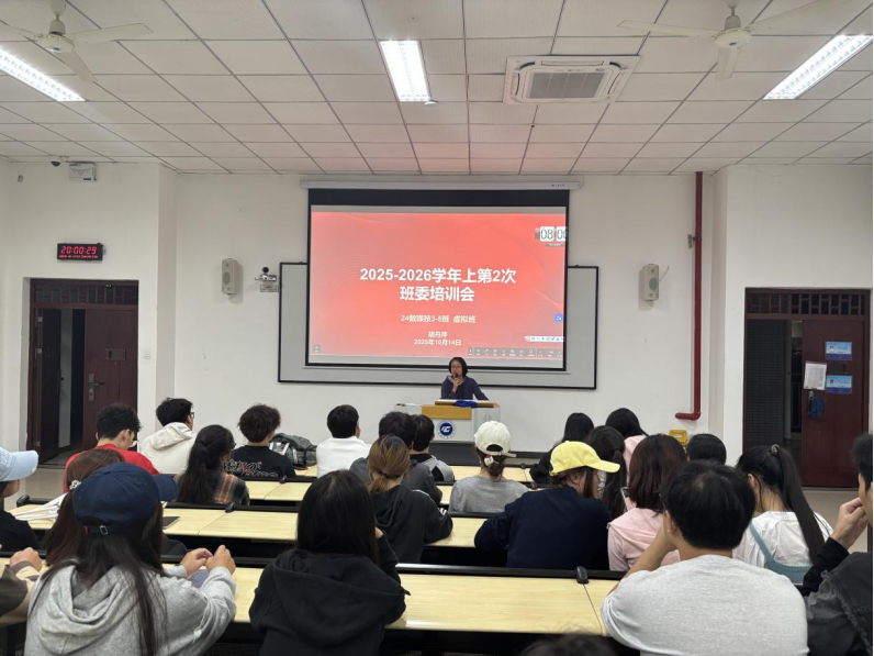 2025年10月14日,数字媒体技术、虚拟现实技术专业全体班委会成员齐聚6204教室,召开本学期第二次班委培训会。此次会议由辅导员胡丹萍主持,旨在明确班委职责,提升班委综合能力与办公技能水平,助力后续班级管理及学风建设工作高效推进。