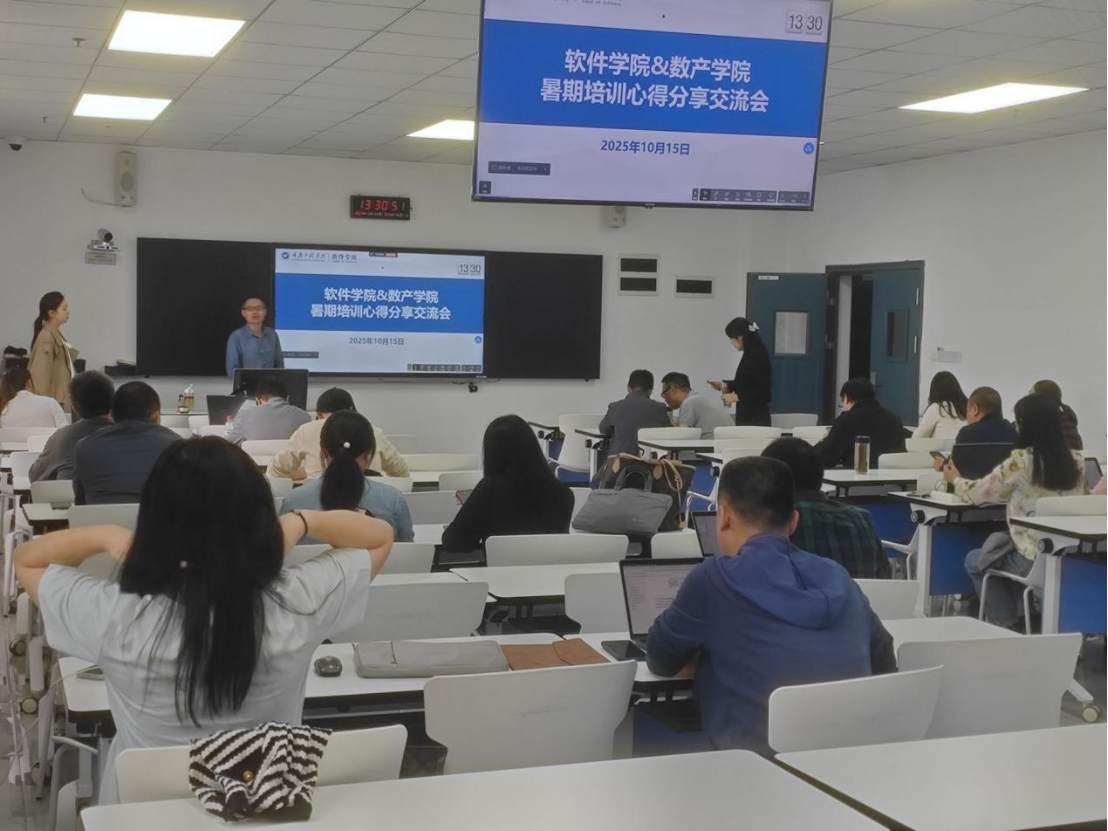 (文/图 软件学院 梁书娟) 2025年10月15日下午,软件学院和数字孪生产业学院组织开展暑期培训心得分享交流会。本次交流会旨在搭建教师学习交流平台,促进培训成果转化,推动教学改革,提升教师教学能力。学院全体专任教师参与本次培训,刘毅卓、米翔畅、马东梅三位教师作为代表,结合暑期培训所学进行经验分享。