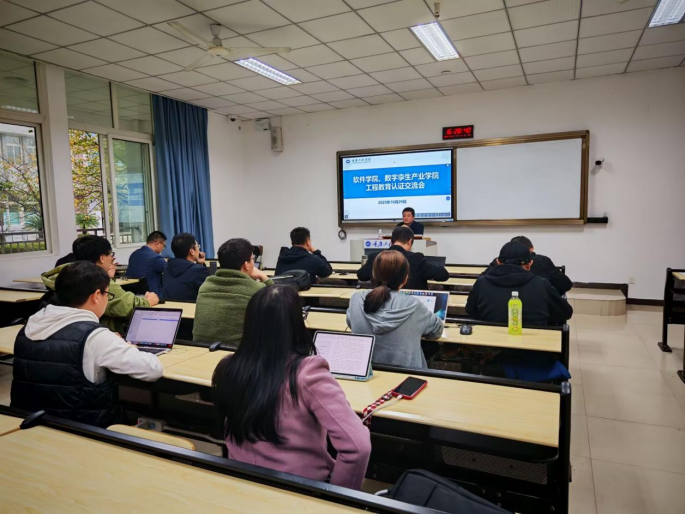 (图/文软件工程研究所 秦伦)10月29日,软件学院、数字孪生产业学院在6102智慧教室举办软件工程专业工程教育认证专题交流会。重庆邮电大学计算机科学与技术学院实验中心副主任吴朝锋老师、软件学院副院长唐浩坤、软件学院和数字孪生产业学院的骨干教师齐聚现场,围绕工程教育认证核心议题展开深度研讨,聚焦教师在认证准备中的实操需求,分享实用方法与经验,现场交流氛围热烈。
