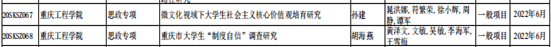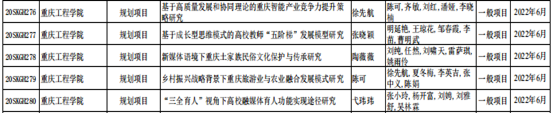 本网讯(文/刘益明)近日,根据《重庆市教育委员会办公室关于做好2020年度人文社会科学类研究项目申报工作的通知》渝教宣发〔2020〕1号)获悉,重庆工程学院确立2020年度市教委人文社会科学类研究项目共8项,其中包括规划项目5项、党建与纪监专项1项、大学生思想政治教育研究专项2项。